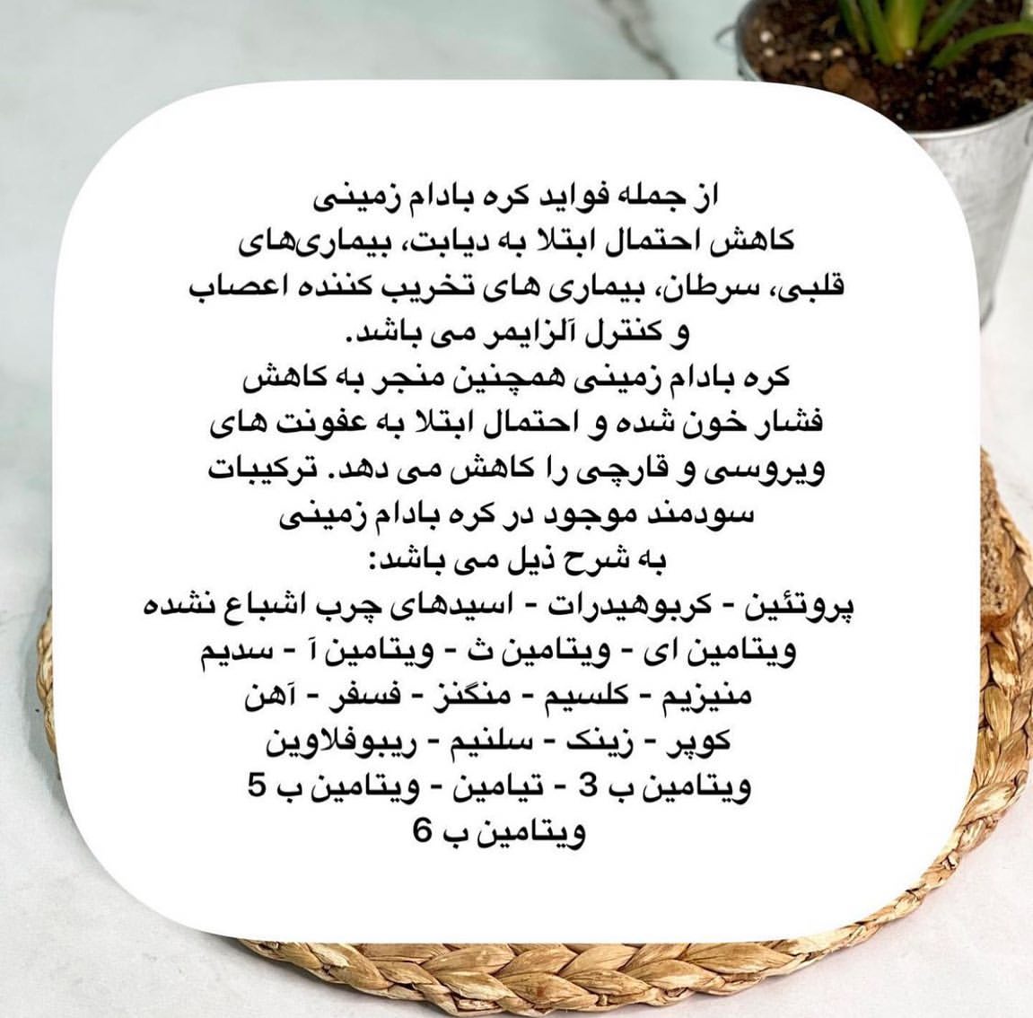 دستهبندی: مزههابرچسبها : کرهبادامبادامزمینیبادام_زمینیکره_بادام_زمینیصبحانهصبحانه_سالمرژیملاغریسالم_خوریارگانیکسالمطبیعی